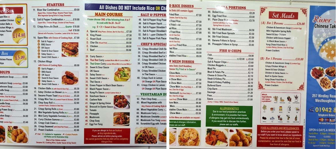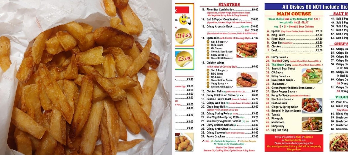 Indulge in deliciously authentic Chinese cuisine at River Star Chinese Takeaway in Westhoughton, Bolton. Enjoy our popular chips and curry dishes, prepared with care by our dedicated team. Visit us at 257 Hindley Rd or call +44 1942 817202 to place your order today!